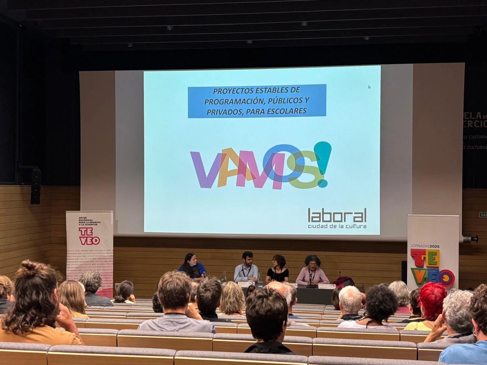 “Tenemos un compromiso ético y un compromiso artístico”, recordaba la presidenta de TE VEO, quien dio paso a la primera de las mesas programadas: Proyectos estables de programación, públicos y privados, para escolares: del primer aplauso a la fidelización del público. En este marco, Lourdes Prendes, de Laboral Ciudad de la Cultura, destacó que la iniciativa Vamos! ha programado a lo largo de 14 años a cerca de 100 compañías y 500 funciones; Javier Zurita, del proyecto Teatro a la vuelta de la esquina de Sala Tarambana, confesó que diseñar una programación cuesta mucho cuando no tienes recursos, e Irene Intxausti, de Paraíso Púlsar, adelantó que el programa invitará a las familias a participar en un taller de manera previa a que sus hijos vayan al teatro.