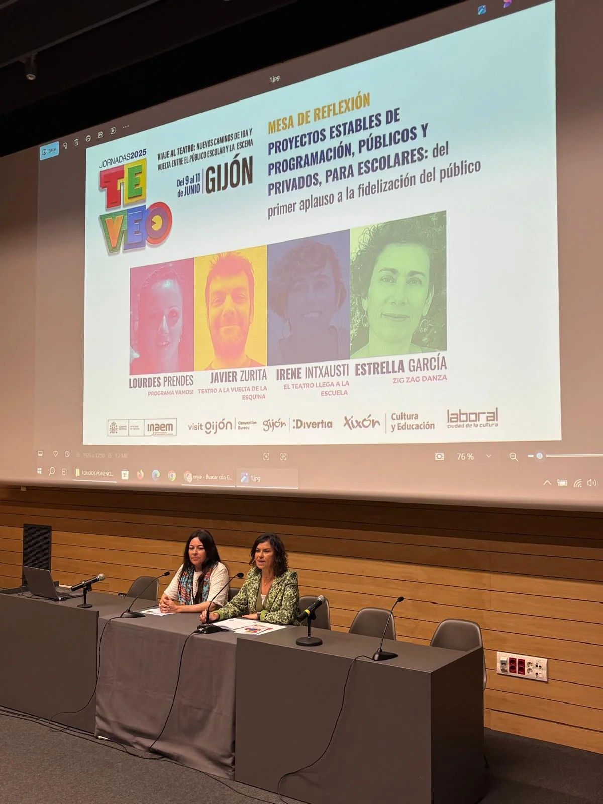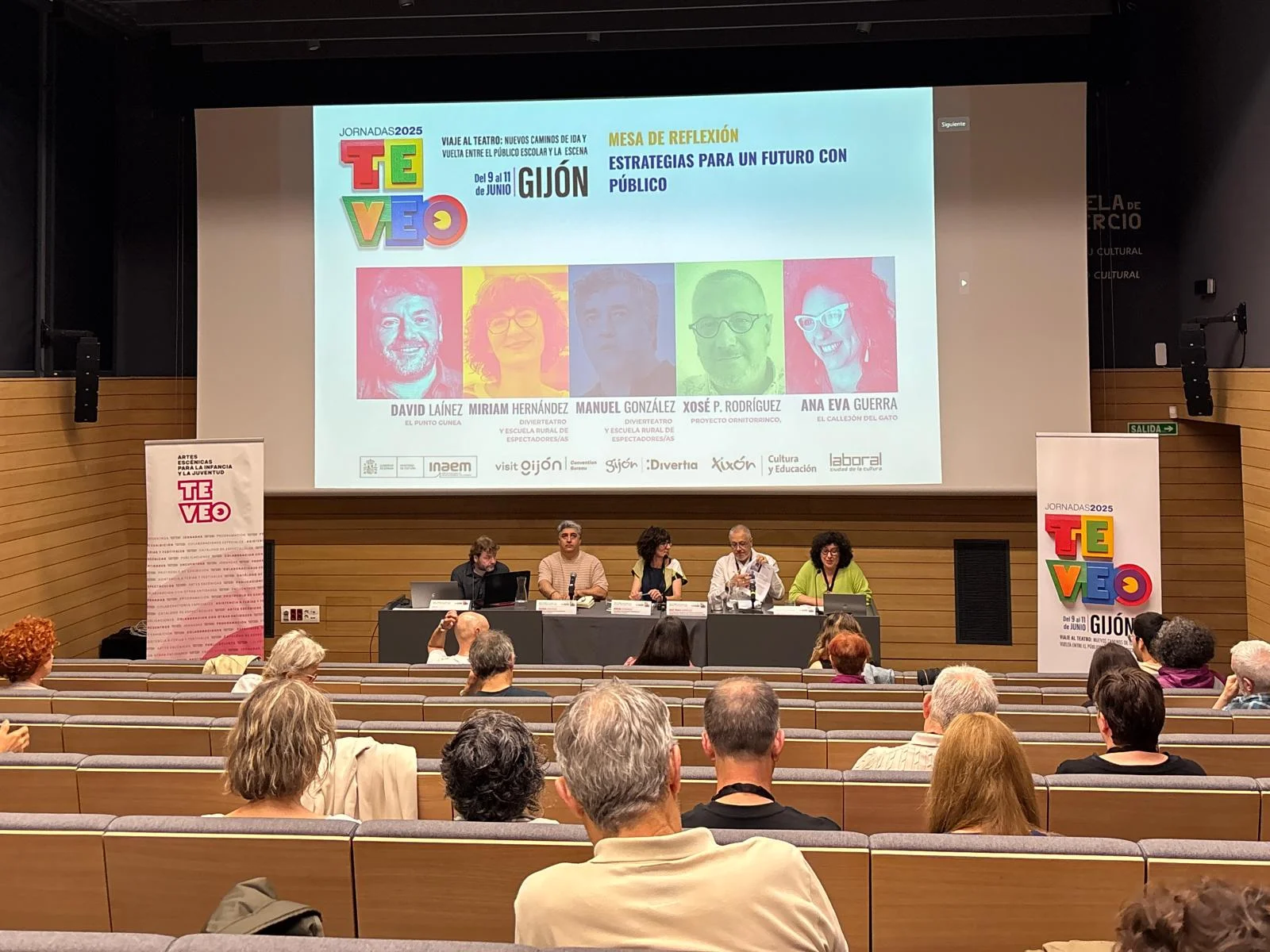 Tras la tradicional celebración de la Asamblea TE VEO, que tuvo lugar el lunes 9 de junio en el Paraninfo de la Laboral, el martes llegaba el momento de dar comienzo a ese VIAJE AL TEATRO: Nuevos caminos de ida y vuelta entre el público escolar y la escena. La concejala de Cultura, Juventud y Museos de Gijón, Montserrat López Moro, inauguró las Jornadas junto a nuestra presidenta, Patricia R. Cercas; ambas pusieron de manifiesto la trascendencia de acercar las artes escénicas a los públicos más jóvenes.