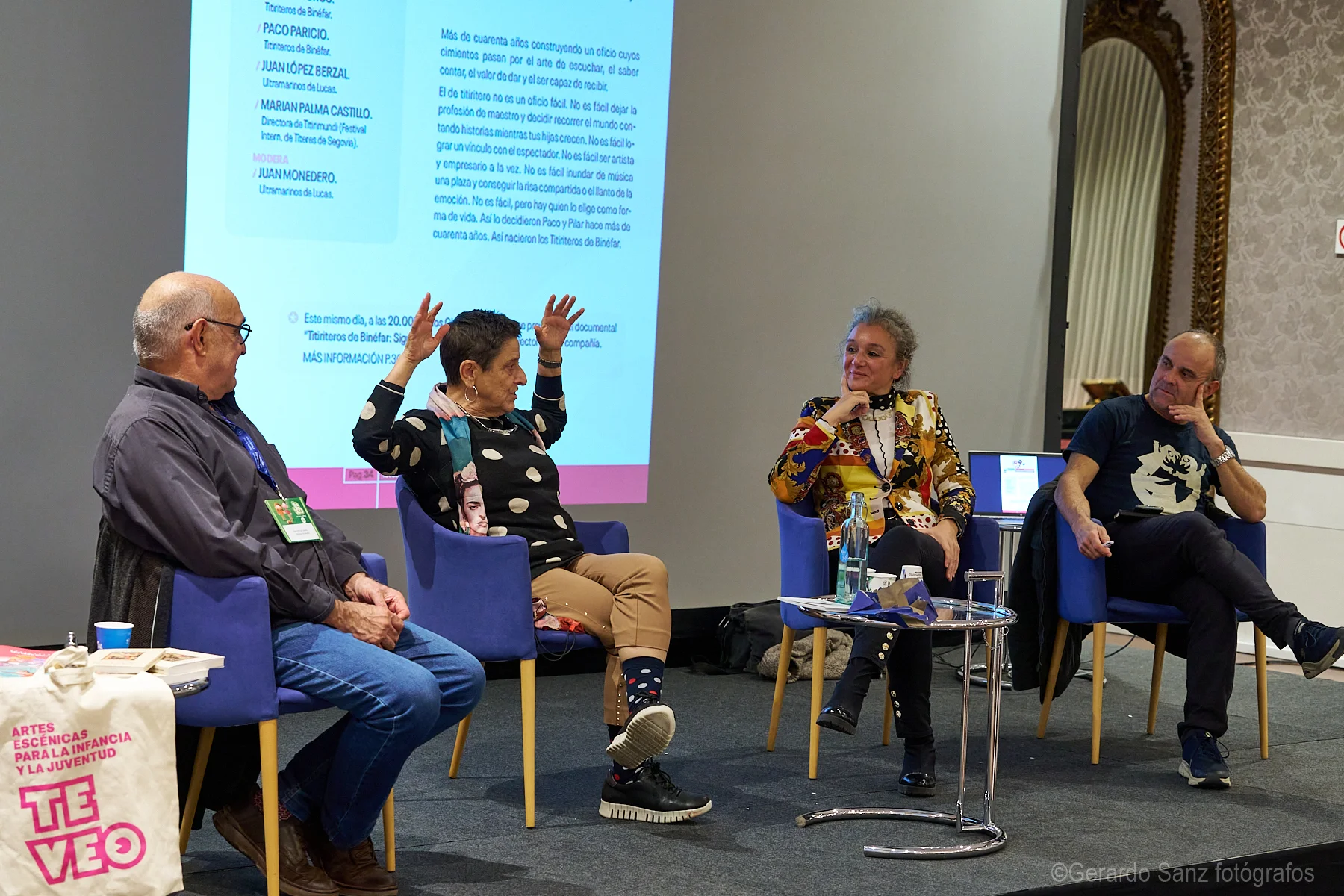 ¿Y qué sería de los Encuentros TE VEO sin homenaje? En este caso, este ha sido la espina dorsal de toda la cita. Los Titiriteros de Binéfar cumplen 50 años de trayectoria, un hito que no podíamos dejar de celebrar. Así que los 27º Encuentros han estado dedicados a ellos, a su arte y a su compromiso. Un encuentro con estudiantes en el marco de las Jornadas TE VEO en la UVa, una mesa de reflexión, la proyección del documental Siguiendo los pasos. Titiriteros de Binéfar y una extensión en La Cistérniga, además de su reencuentro con el público en la sala Principal del Teatro Calderón, han sido nuestro modo de darles las gracias y reconocer su tesón, su compromiso y su profesionalidad.