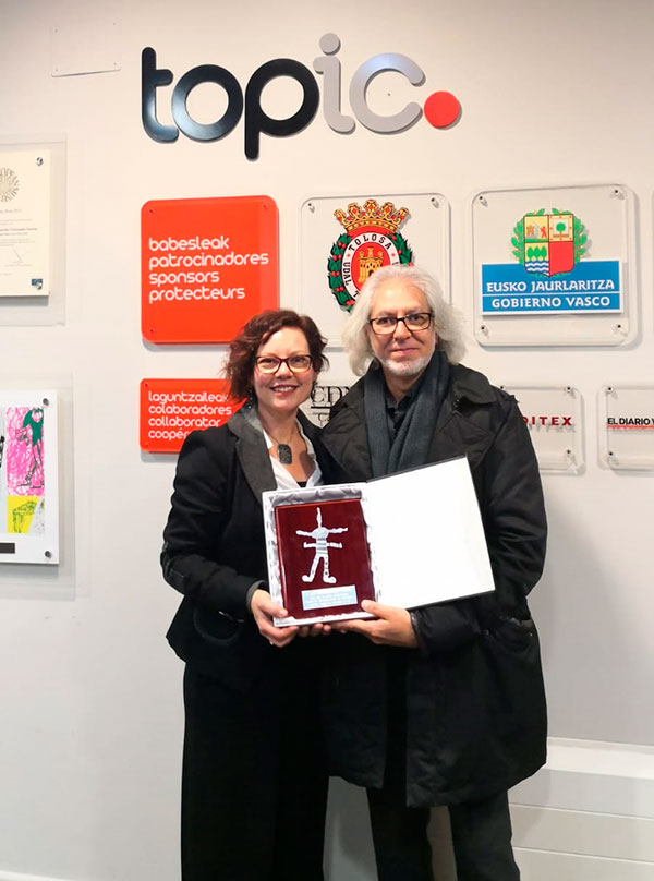 TITIRIJAI, Festival Internacional de Títeres de Tolosa, nos ha homenajeado por nuestra trayectoria y por el buen trabajo que hemos desarrollado dentro de los Encuentros TE VEO durante estos 20 años de recorrido. Así que el sábado 1 de diciembre DE 2018 el coordinador de los Encuentros, Jacinto Gómez y la presidenta de la Asociación TE VEO, Sara Sáez, acudieron a Tolosa a recoger este reconocimiento.